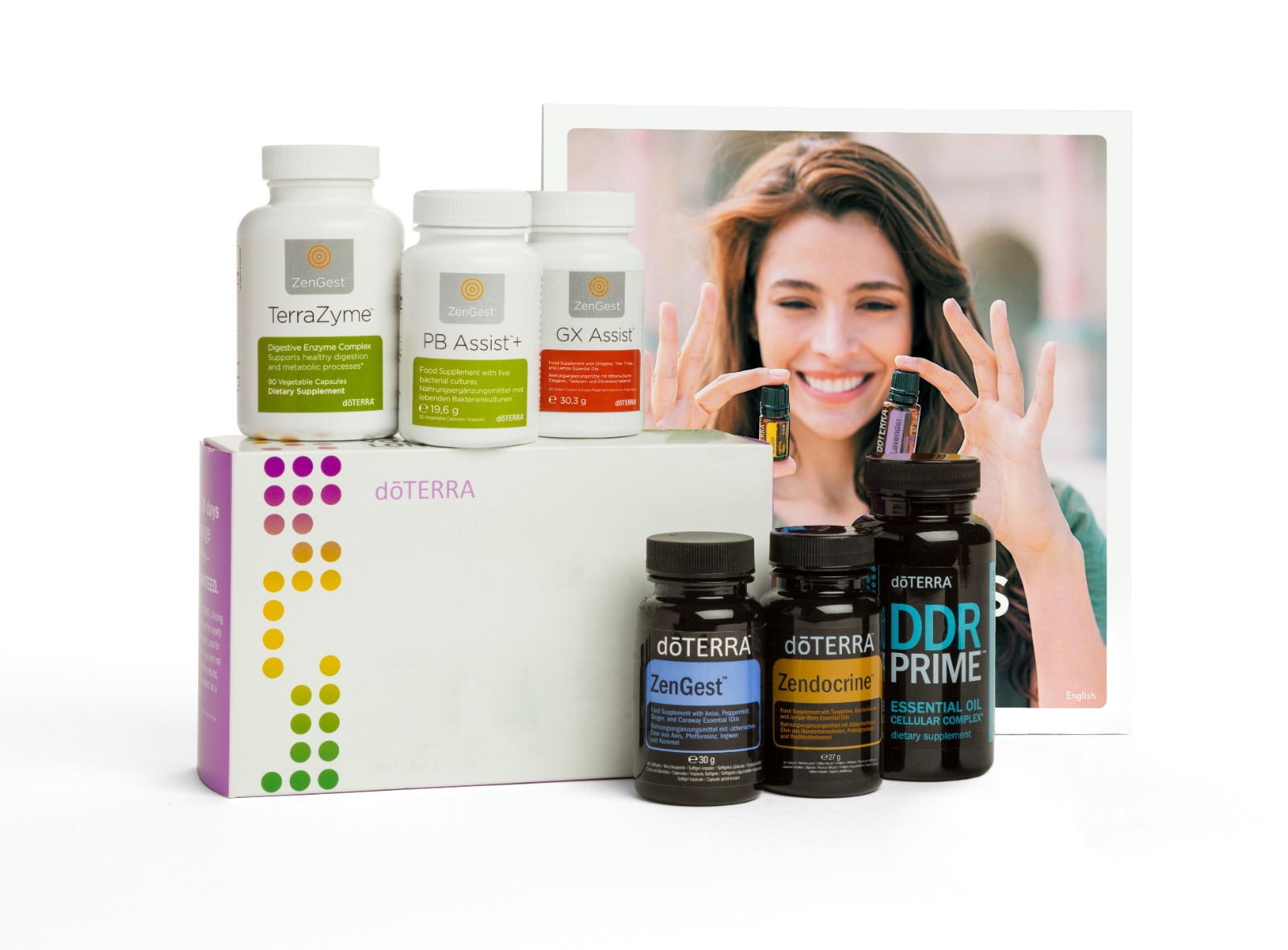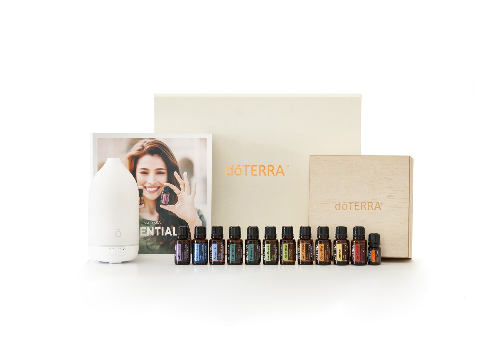Pfefferminze, Lavendel, Weihrauch, Teebaum, Oregano, Zitrone à je 15ml, 3 Öle Mischungen à 15ml, 1 Öle Mischung à 5ml, Diffuser und 115ml fraktioniertes Kokosöl.